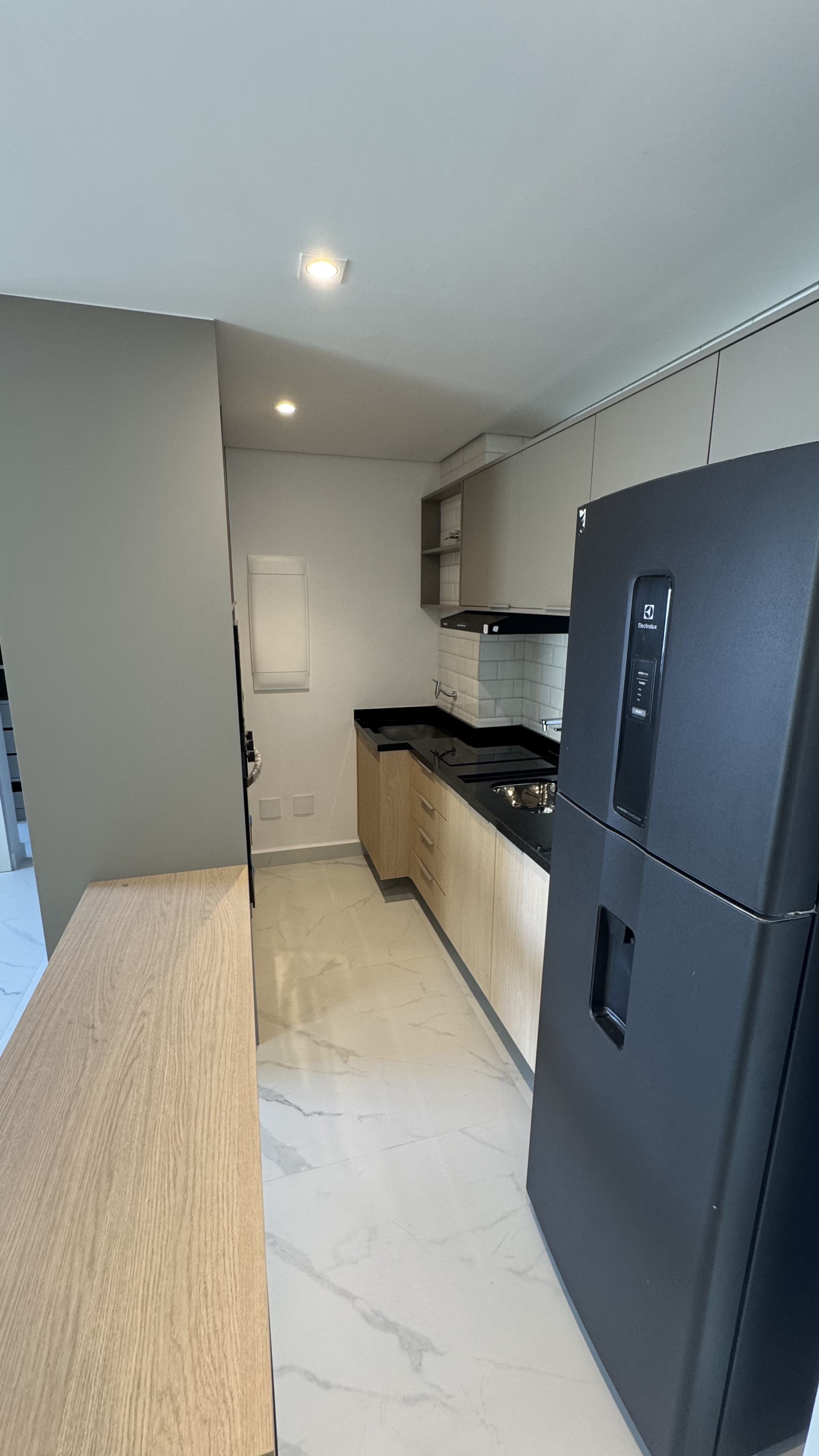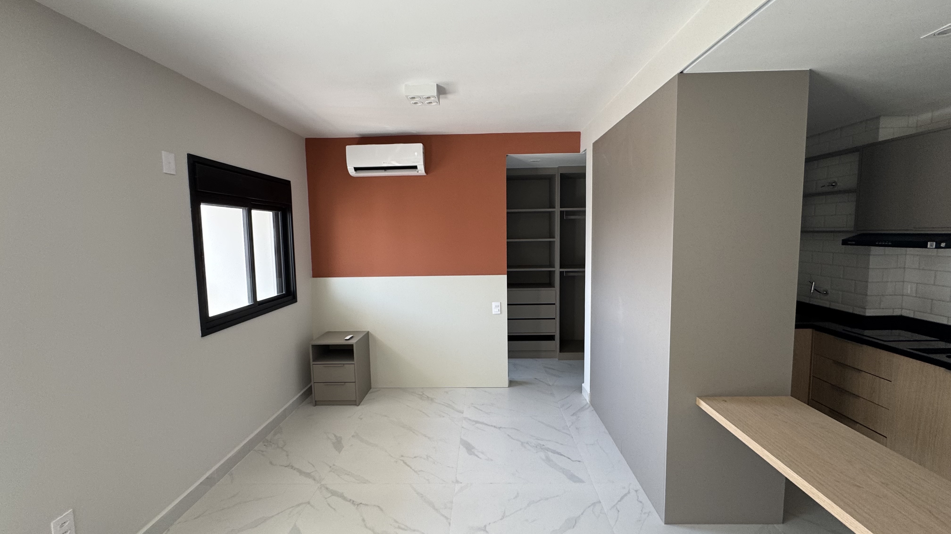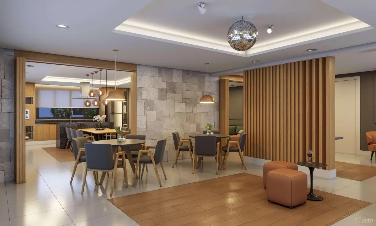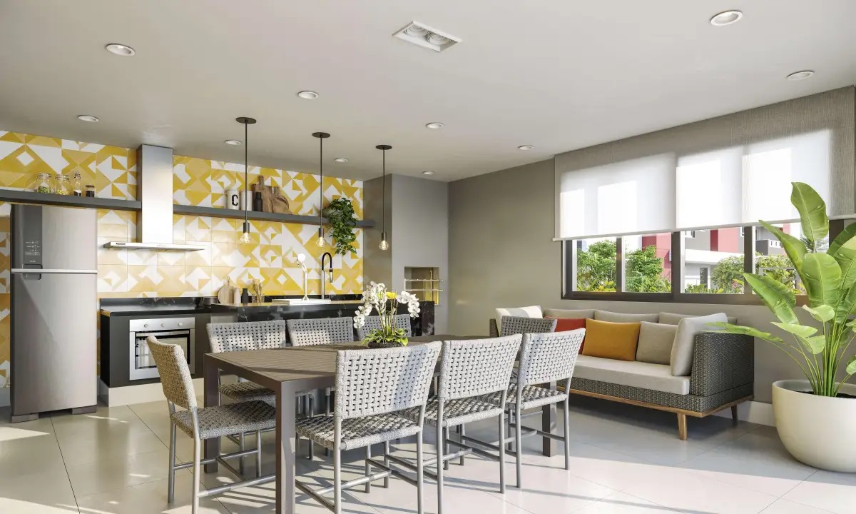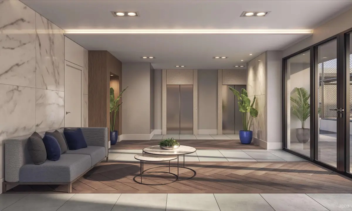 Apartamento Studio com área privativa de 44,00 m², mobiliado e decorado com móveis planejados, 1 suíte com closet, banheiro e lavatório, área de serviço, cozinha, sala de estar, varanda gourmet, fechadura biométrica e com senha na porta de entrada, persianas 100 % blackout e automatizada com controle remoto, 1 vaga de garagem por apartamento com ponto de recarga para carro elétrico, medição individual. Depósitos privativos no subsolo, sendo 1 depósito home box por apartamento com 2,75 m².