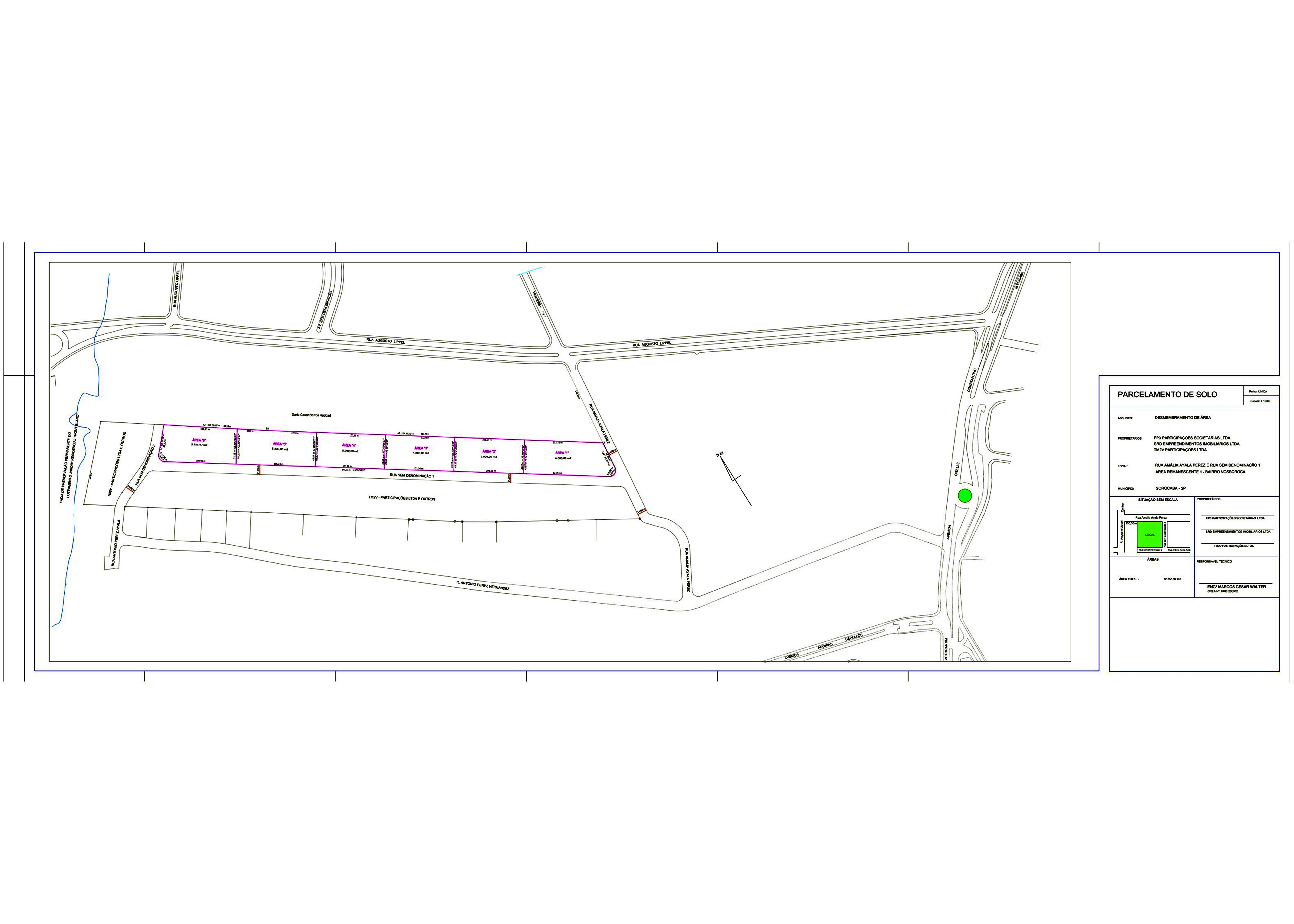LOCALIDADE DO IMÓVEL: Rua Ademar Figueiredo (rua inicia na Rua Amalia Ayala Peres, 42 - Sorocaba/SP – CEP: 18048-130).