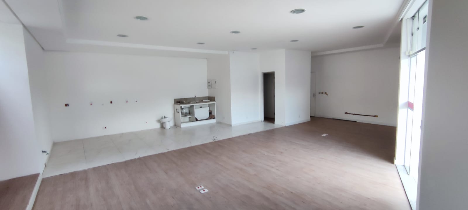 Sendo casa: 01 salão comercial com deck e 02 banheiros, com aproximadamente 100m2.